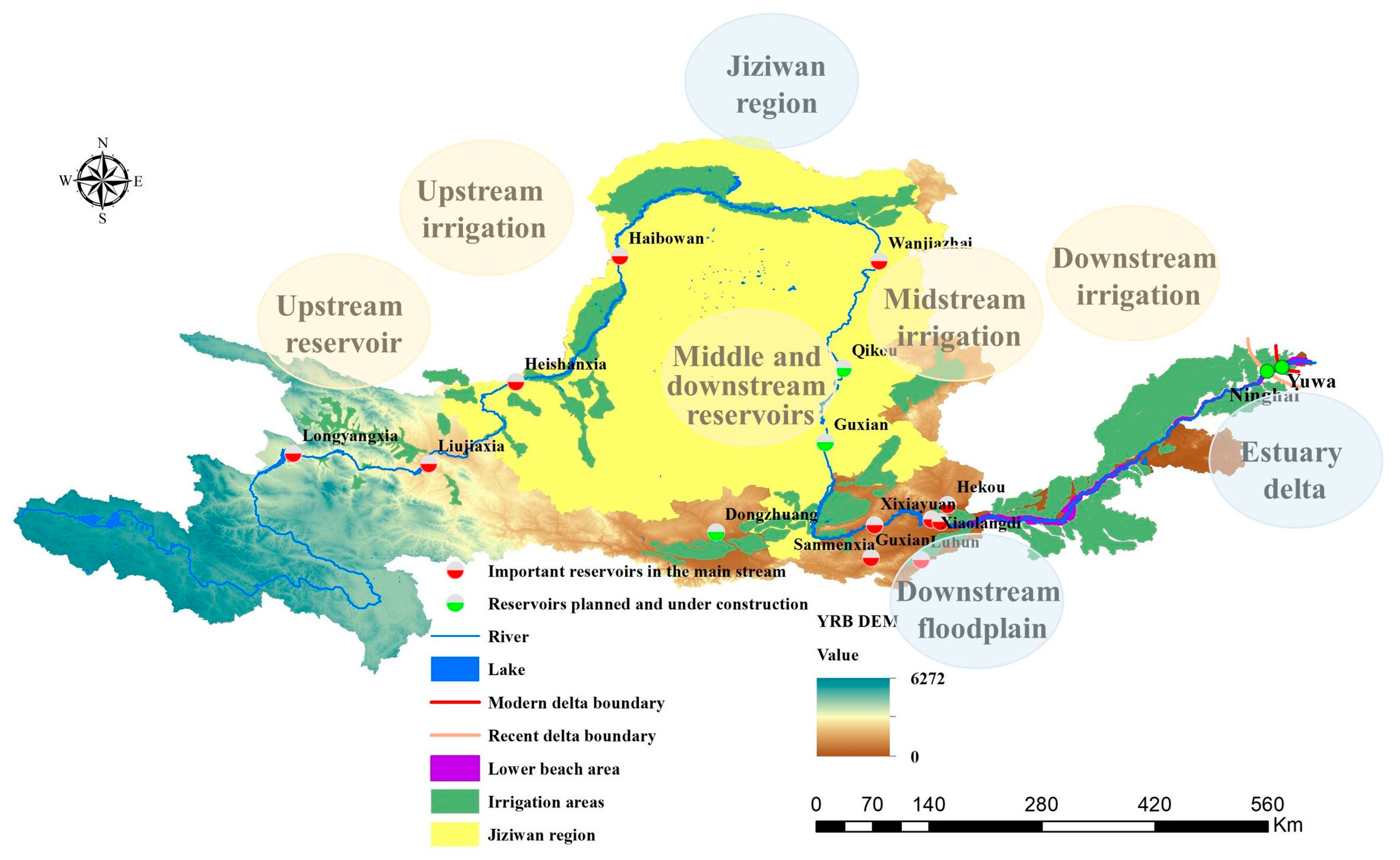 - Liu, C.; Jiang, E.; Qu, B.; Li, L.; Hao, L.; Zhang, W. Spatial–Temporal Evolution of Economic-Ecological Benefits and Their Driving Factors in Yellow River Irrigation Areas. Ecol. Indic. 2025, 173, 113419. [Google Scholar] [CrossRef]