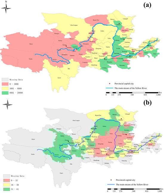 In contrast, mid- and upper-basin regions face dual challenges of limited digital economy development and compromised water quality. Non-capital cities in these areas lag in industrial transformation due to geographical constraints and heavy reliance on traditional sectors such as energy, chemicals, and agriculture [8,64]. The midstream basin in particular concentrates China’s core energy infrastructure, hosting dense clusters of coal chemical enterprises—which account for over three-quarters of local industries in some areas [59,65]. Critically, many of these facilities are located within key watershed zones, contributing to chronically poor water quality in tributaries across Inner Mongolia, Shanxi, and Shaanxi [66].