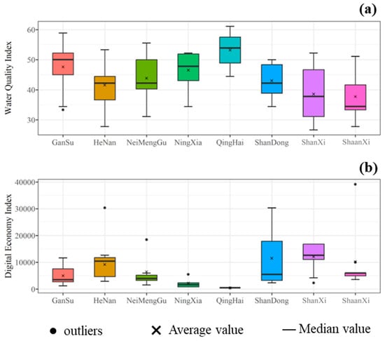 Global environmental governance has entered a new era marked by green and low—carbon development [1,2]. As an inevitable result of the progress in information technology, networking, and intelligence, the digital economy, succeeding the agricultural and industrial economies, represents a more advanced stage of economic evolution. It reshapes production and consumption patterns and plays a crucial role in the global economy and high—quality development [3,4]. In 2024, it accounted for 60% of the global GDP, underscoring its rising significance [5]. The Yellow River Basin (YRB), with high sediment loads and significant governance challenges, faces severe water security threats such as scarcity, pollution, imbalanced water—sediment dynamics, and restricted socioeconomic development [6,7,8]. Resolving these issues is vital for China’s ecological protection and high—quality development in this region. Notably, in 2022, nearly 30,000 digital economy enterprises in the basin generated 1.2 trillion RMB (∼$168 billion), contributing over 30% to the regional GDP, which demonstrates its key role in regional transformation [9]. Consequently, elucidating digital economy-water quality interactions in the YRB is essential for both safeguarding water security and establishing replicable green development frameworks for global river basins.