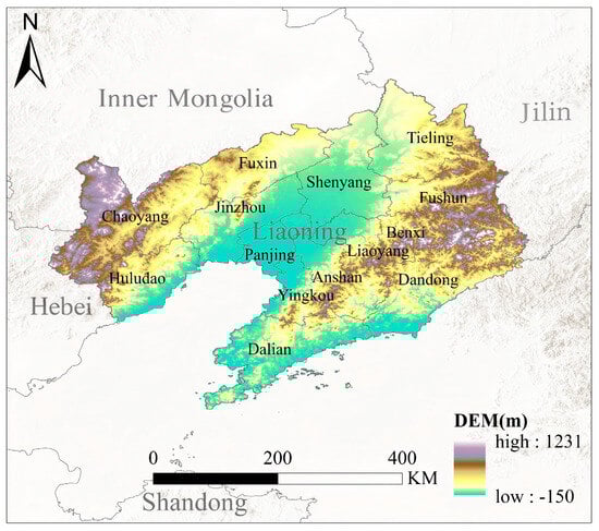 Spatial Patterns of Elevation in Liaoning Eco-Economic Zone in 2020.