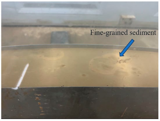 When the initial liquefaction degree is = 0.60, especially for λ/d = 1.816, the EPP at D = 10.7 cm reaches the peak and then dissipates rapidly (Figure 4d), while the EPP of D = 5.5 cm reaches the peak and then dissipates slowly (Figure 4c), which may be due to the upward dissipation of EPP in the deeper part (D = 10.7 cm), which offsets the EPP of the shallow soil (D = 5.5 cm). This opinion is partly supported by the phenomenon that the fine-grained material moves up to the surface with the formation of seepage channels after the seabed is liquefied (Figure 5).