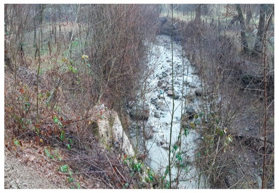 It is important to note that in the past, anti-erosion stone dams were constructed along the Șolea River to mitigate bed degradation and stabilize the channel (Figure 13). However, over the years, these structures have deteriorated and ultimately disappeared, primarily due to a lack of maintenance and repeated destruction caused by flood events. The absence of these protective installations has contributed to the renewed vulnerability of the riverbed to erosion processes, emphasizing the need for rehabilitation and sustained structural intervention.
