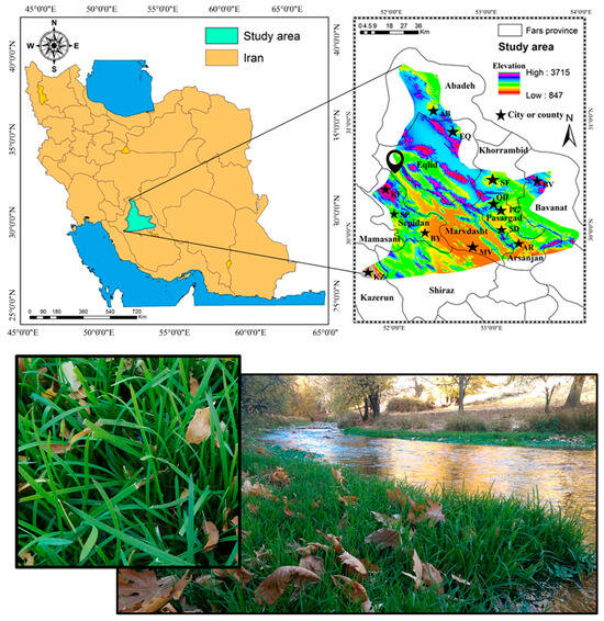 The research area is in Iran’s southwest, in the province of Fars. The research region, which has a surface area of 32,180 km2, is situated between latitudes 30°12′53.81″ and 31°21′50.81″ N and longitudes 51°17′20.11″ and 54°52′51.72″ E. The study was conducted in Fars Province, located in the southwest of Iran. P. pratensis is exclusively present in the Fars Province’s northern areas, which include Shiraz, Kazerun, Sepidan, Bayza, Eqlid, Abadeh, Marvdasht, Saadat Shahr, Qaderabad, Safashahr, Pasargad, Kamfirouz, Arsanjan, and Bavanat (Figure 1).