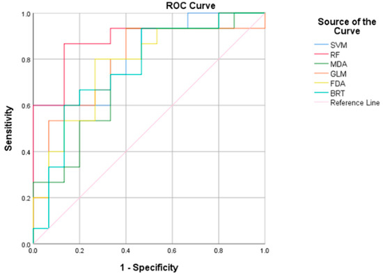 Recent ecological modeling studies have shown that machine learning (ML) techniques are particularly successful for habitat suitability modeling (HSM) of plant species [21,22,23,24]. One important advantage of machine learning-based habitat suitability models is their capacity to represent detailed nonlinear interactions, resolve multicollinearity across variables, and give beneficial predictive accuracy in the context of complex ecological datasets [25]. This study included six machine learning algorithms: Boosted Regression Trees (BRT), Flexible Discriminant Analysis (FDA), Generalized Linear Models (GLM), Mixture Discriminant Analysis (MDA), Support Vector Machines (SVMs), and Random Forest (RF).