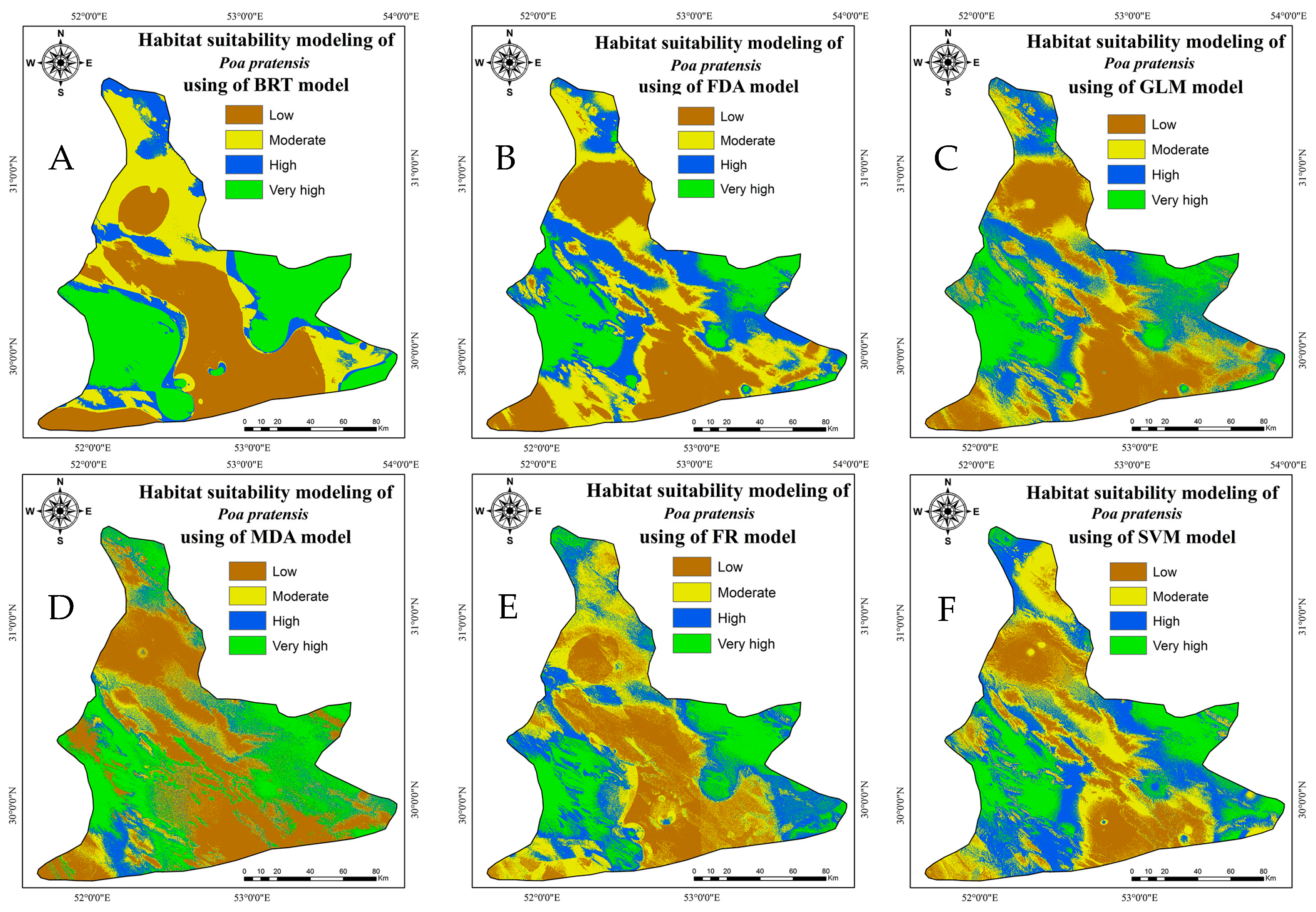 2.5. Models Used for the Habitat Suitability of Kentucky Bluegrass
