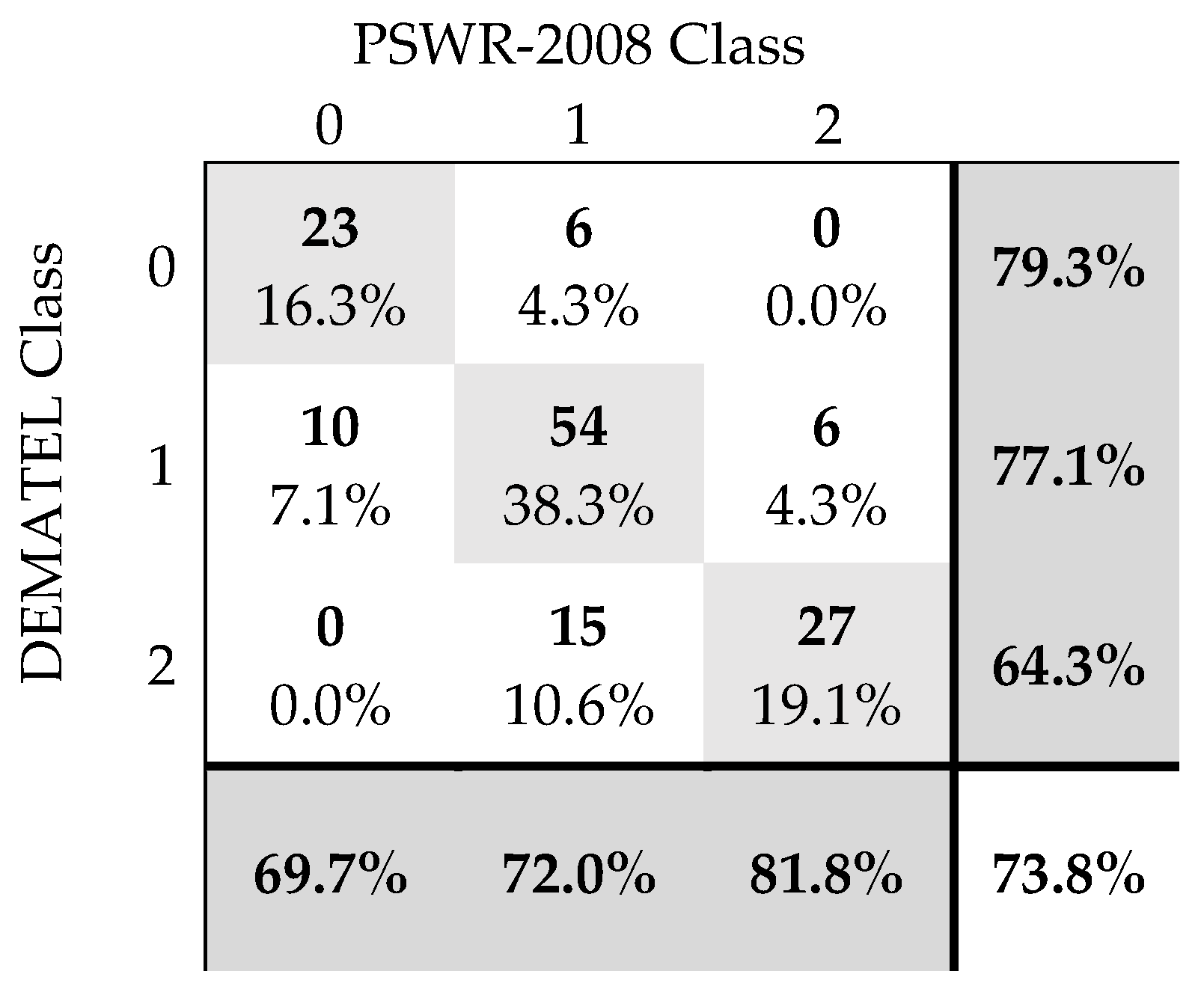 - Kobryń, A. Dematel as a Weighting Method in Multi-Criteria Decision Analysis. Mult. Criteria Decis. Mak. 2017, 12, 153–167. [Google Scholar] [CrossRef]