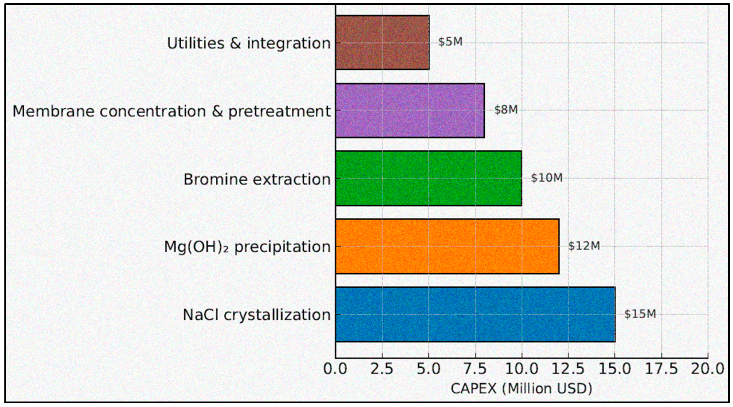 3.2. Simulation and Case Study: 100,000 m3/Day Desalination Plant with Brine Mining