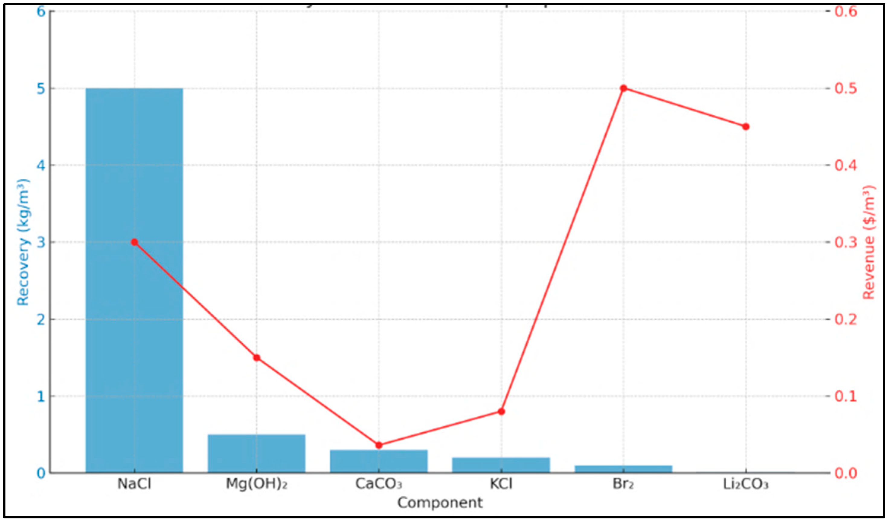 2.4. Simulation of Integrated Brine Recovery in a Desalination Plant