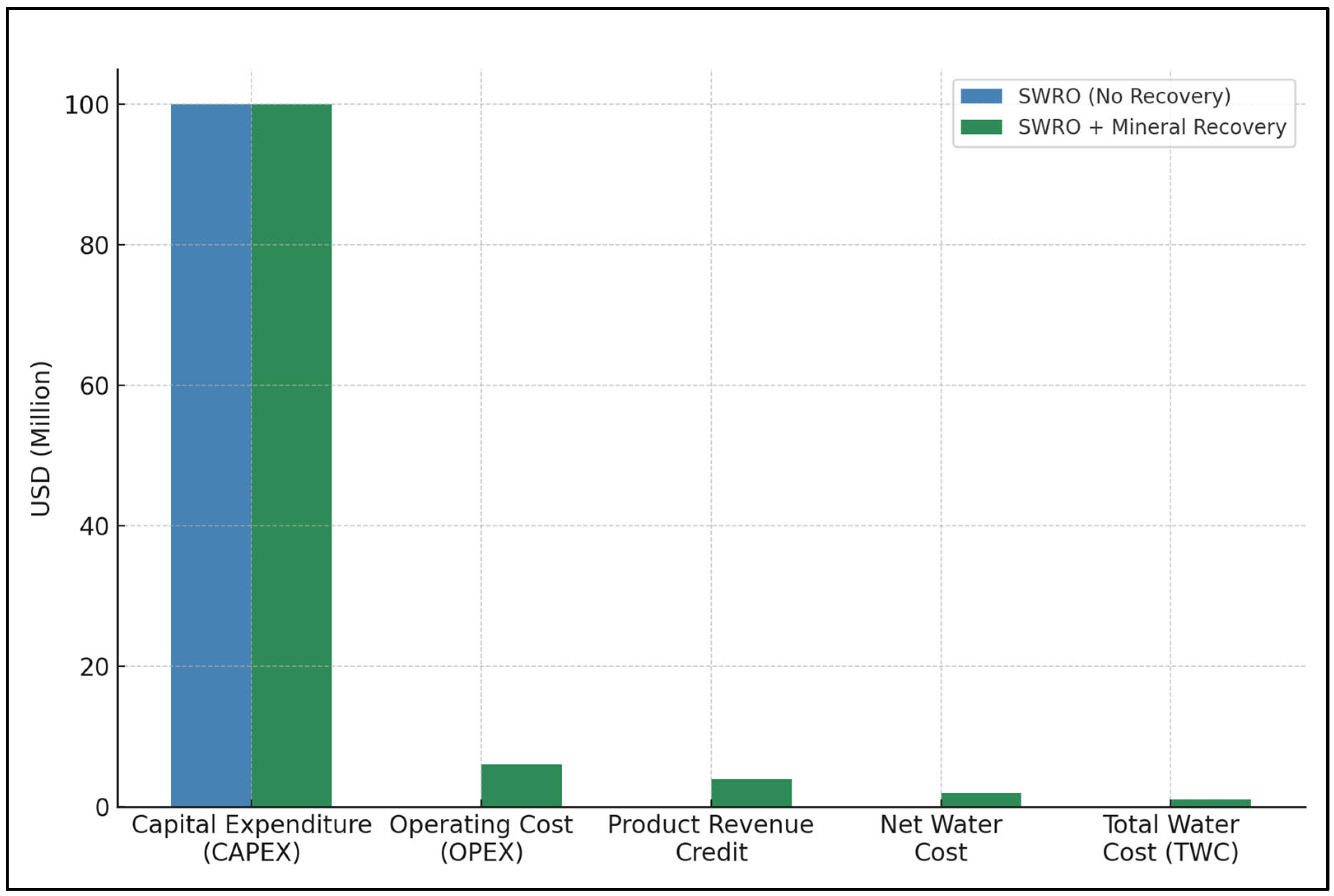 Cost Metric | SWRO Plant (No Recovery) | SWRO + Mineral Recovery |