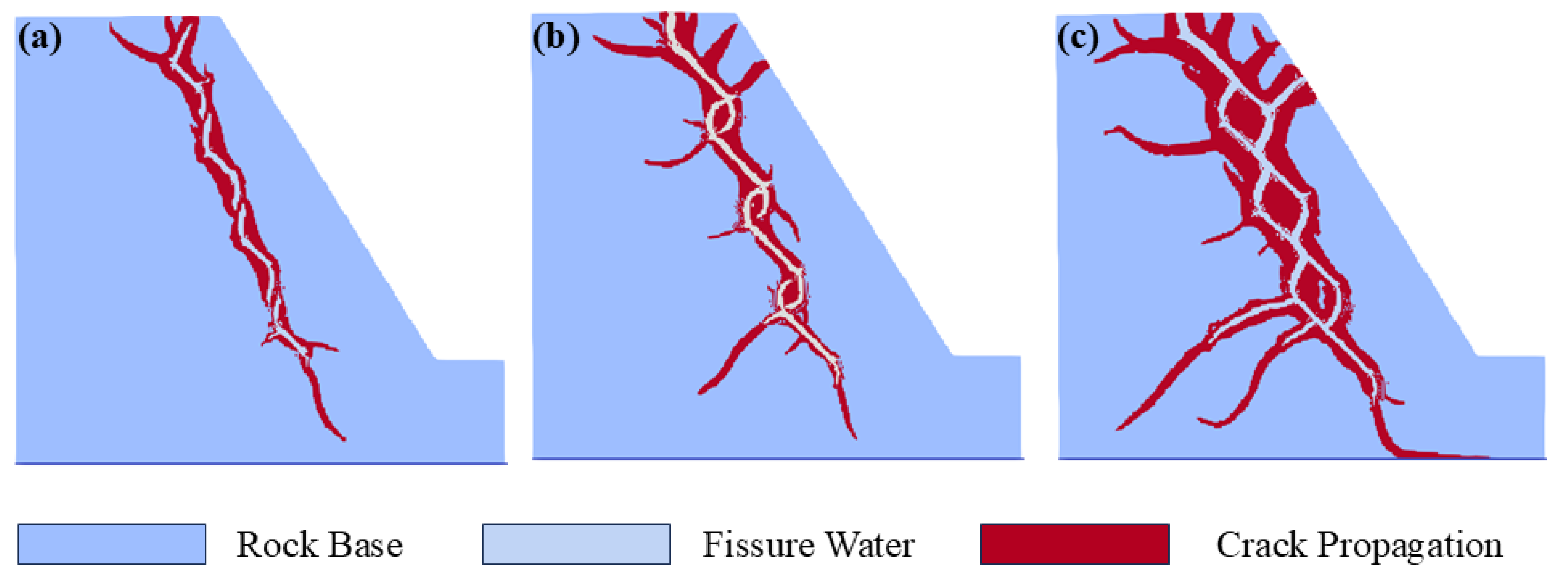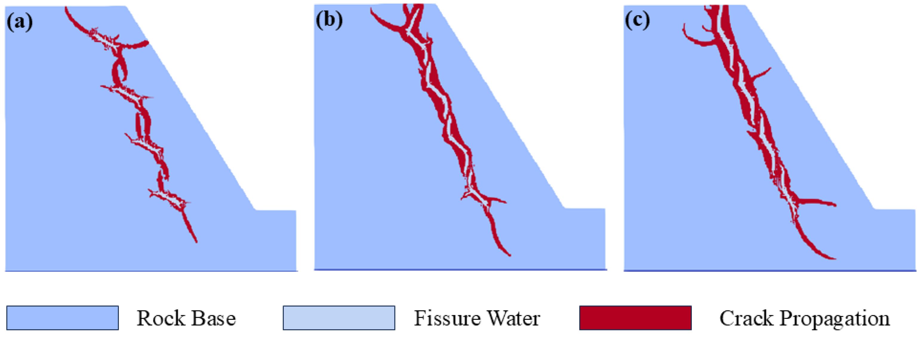Chicago/Turabian StyleGuo, Chunhui, Feixiang Zeng, Han Shao, Wenbing Zhang, Bufan Zhang, Wei Li, and Shuyang Yu. 2025. "Investigating the Frost Cracking Mechanisms of Water-Saturated Fissured Rock Slopes Based on a Meshless Model" Water 17, no. 19: 2858. https://doi.org/10.3390/w17192858