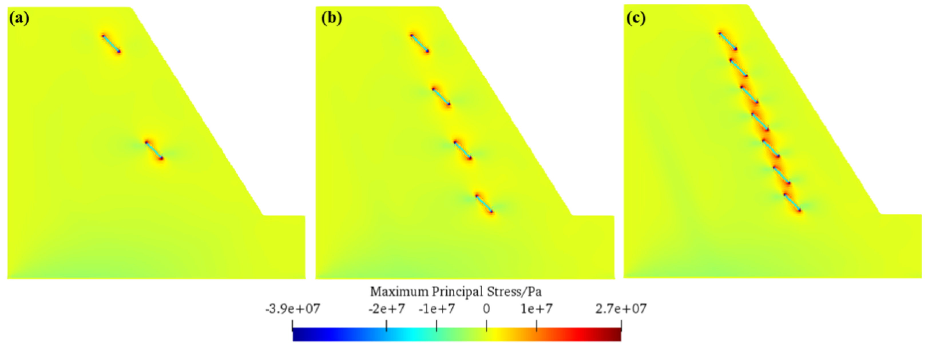 5.4. Mechanism of Action of Different Numbers of Fissure Rows on Rock Slope Frost Heave Failure