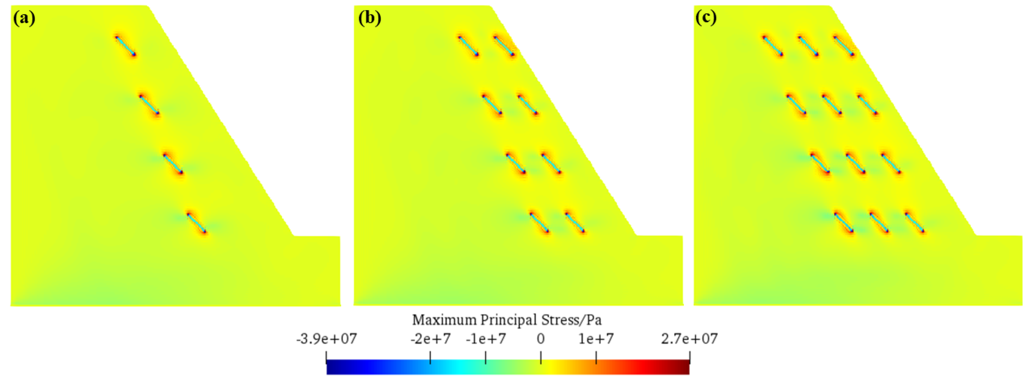 4.5. Influence of Different Numbers of Fissure Rows on Rock Slope Frost Heave Failure
