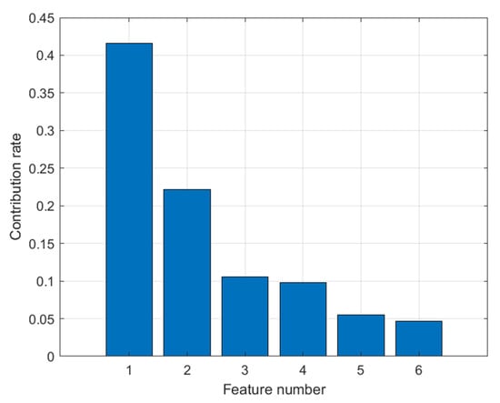 Similarly, we use MATLAB R2023a software to extract the six main features from nine hydro-chemical indices, as shown in Figure 5. The cumulative contribution rate of these six features is about 95%, which captures most of the data’s information. After extracting features from the original indices using KPCA, the data with six features is divided into two groups (training and testing samples) in a 7:3 ratio. KPCA helps simplify the hybrid model’s structure and speeds up its calculations.