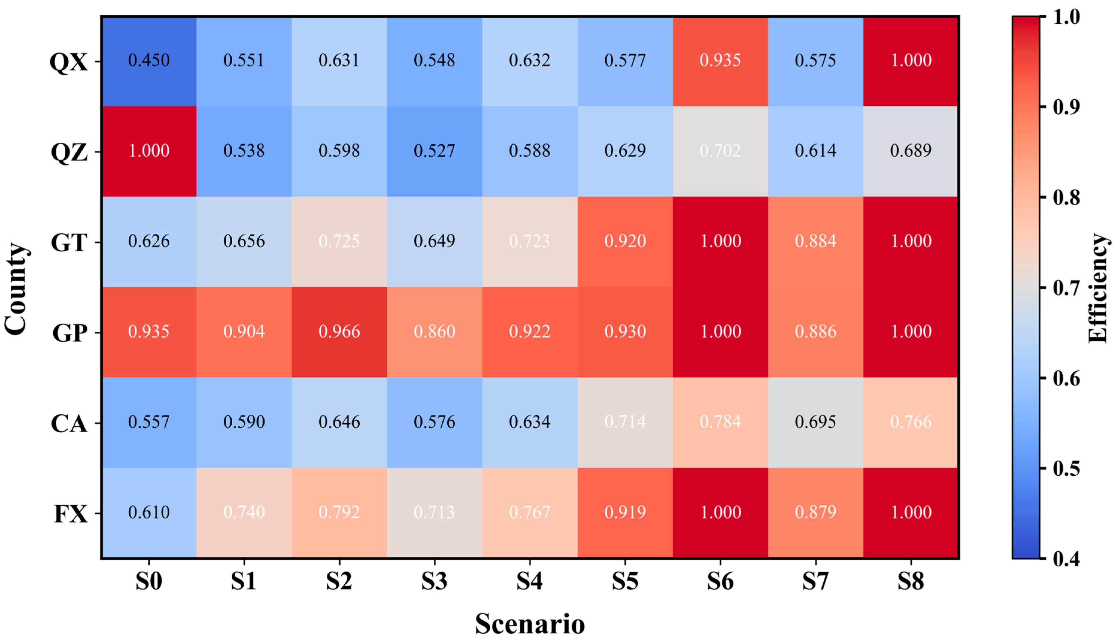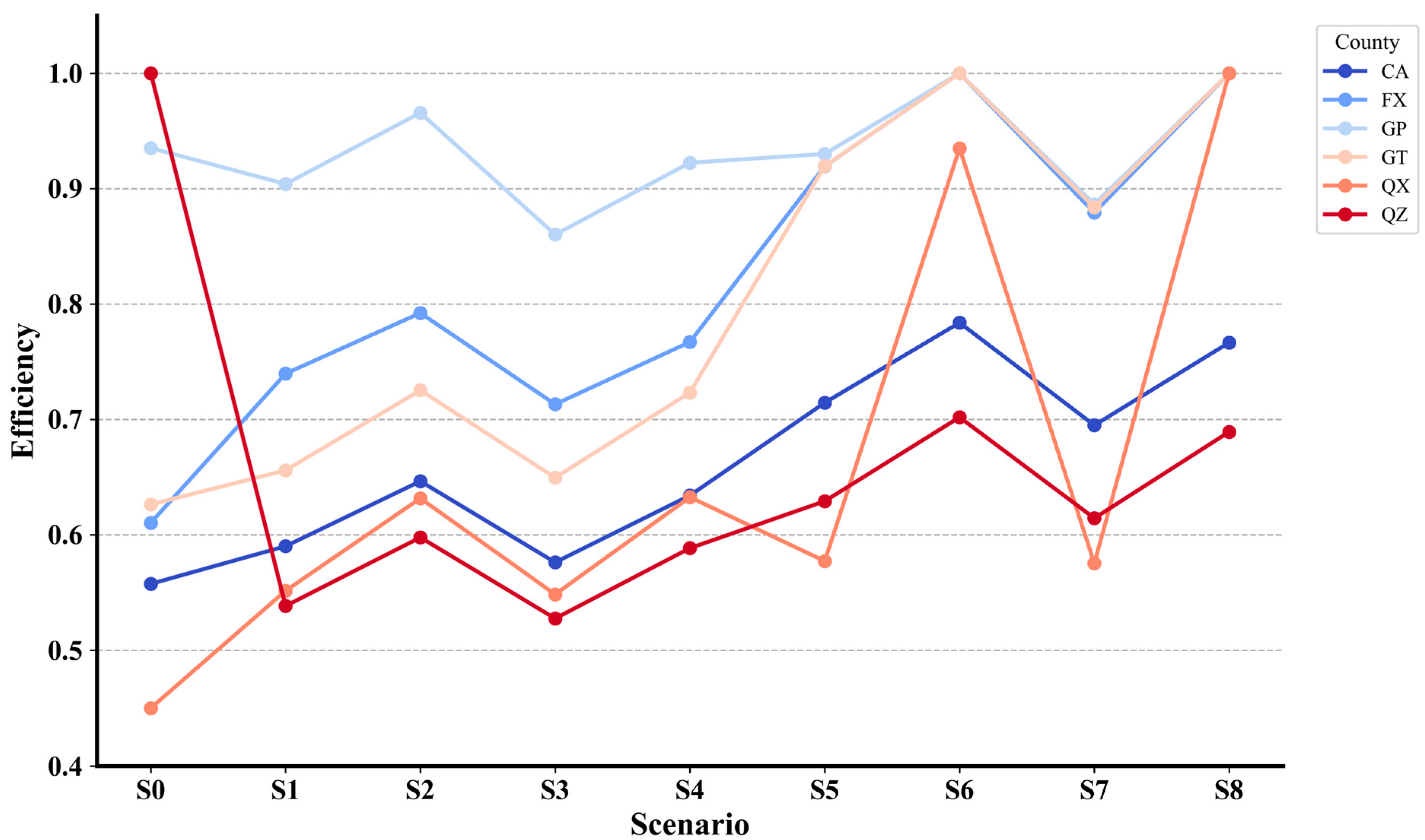 3.1.3. Regularity of Efficiency Response Among Different Scenarios