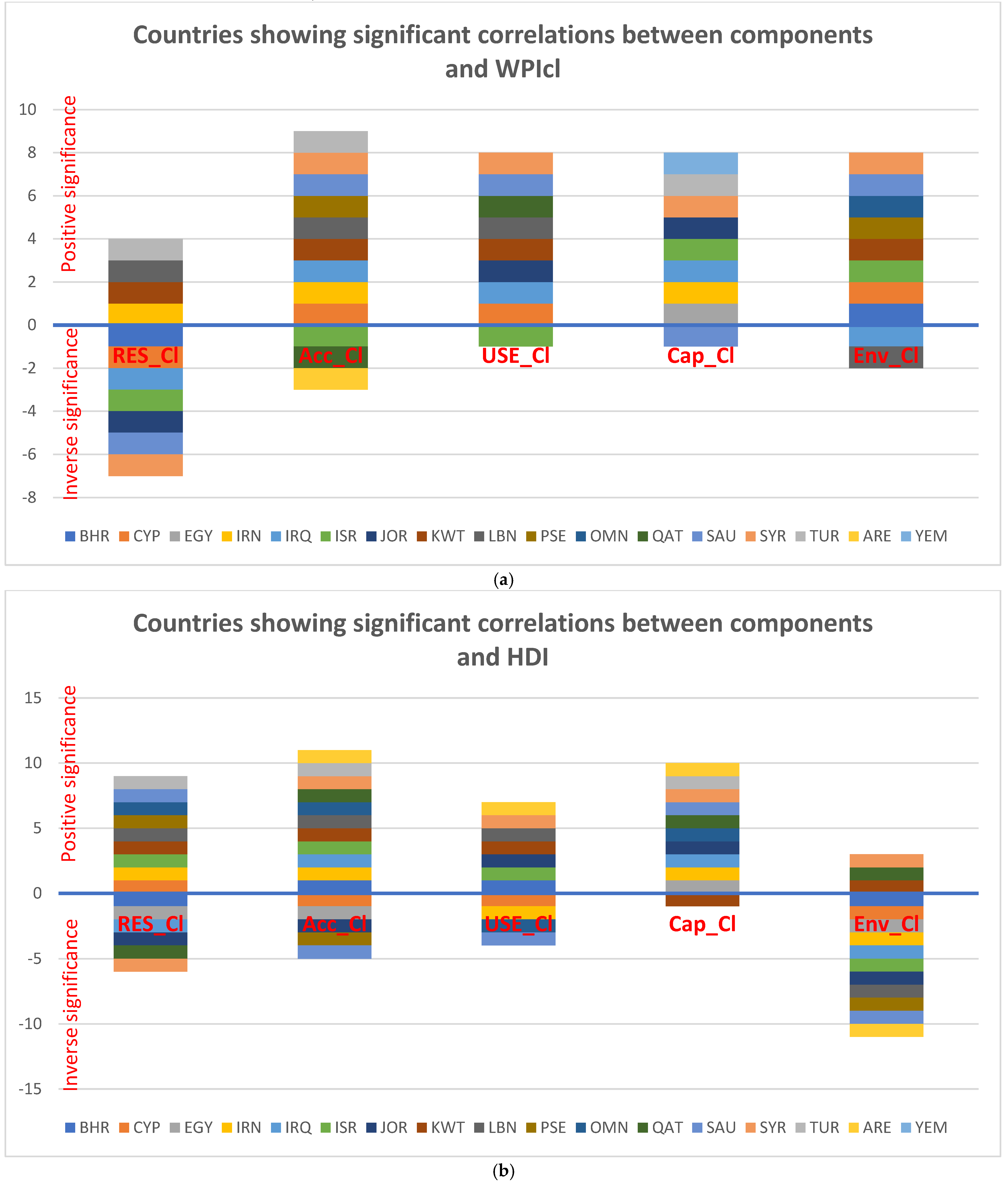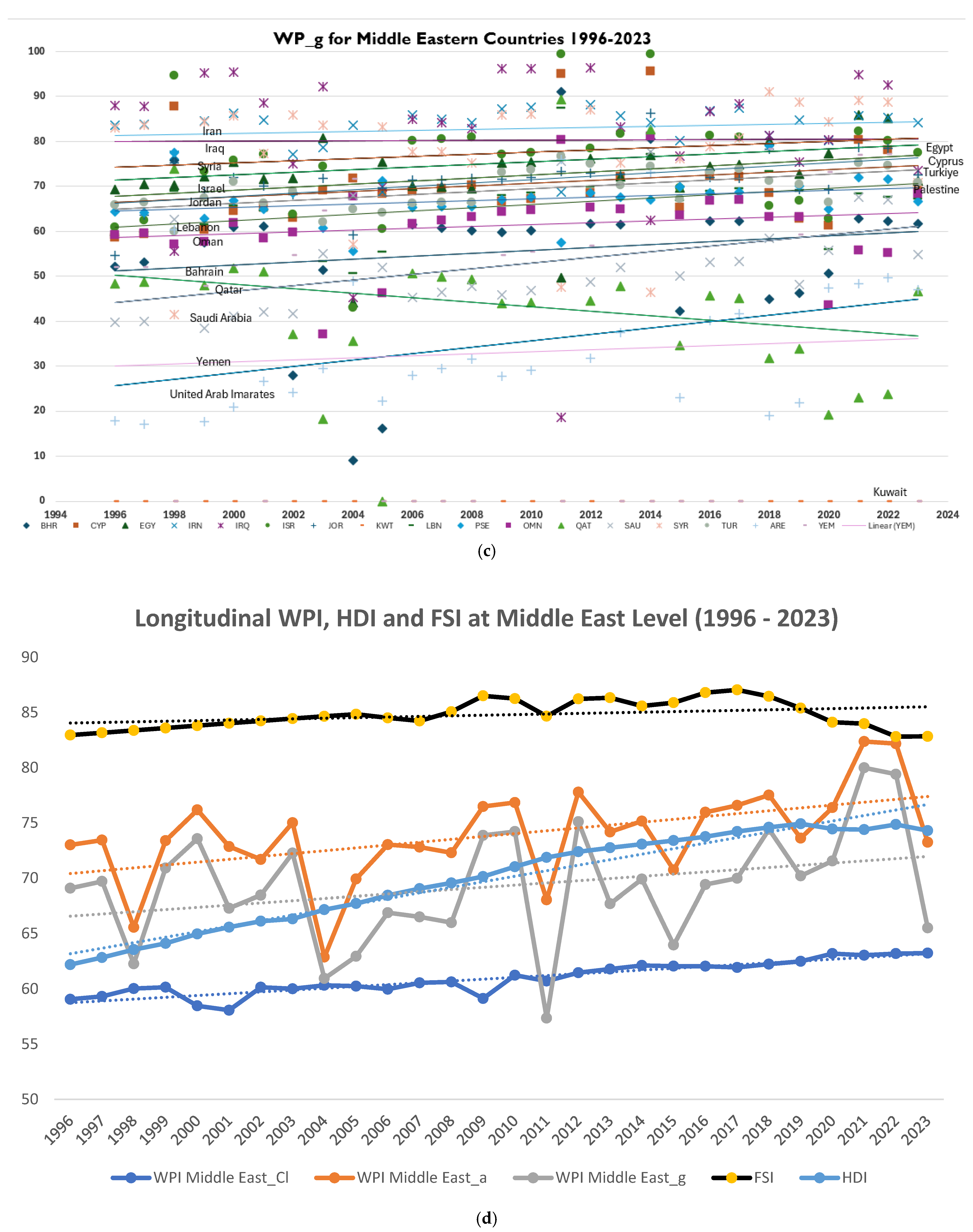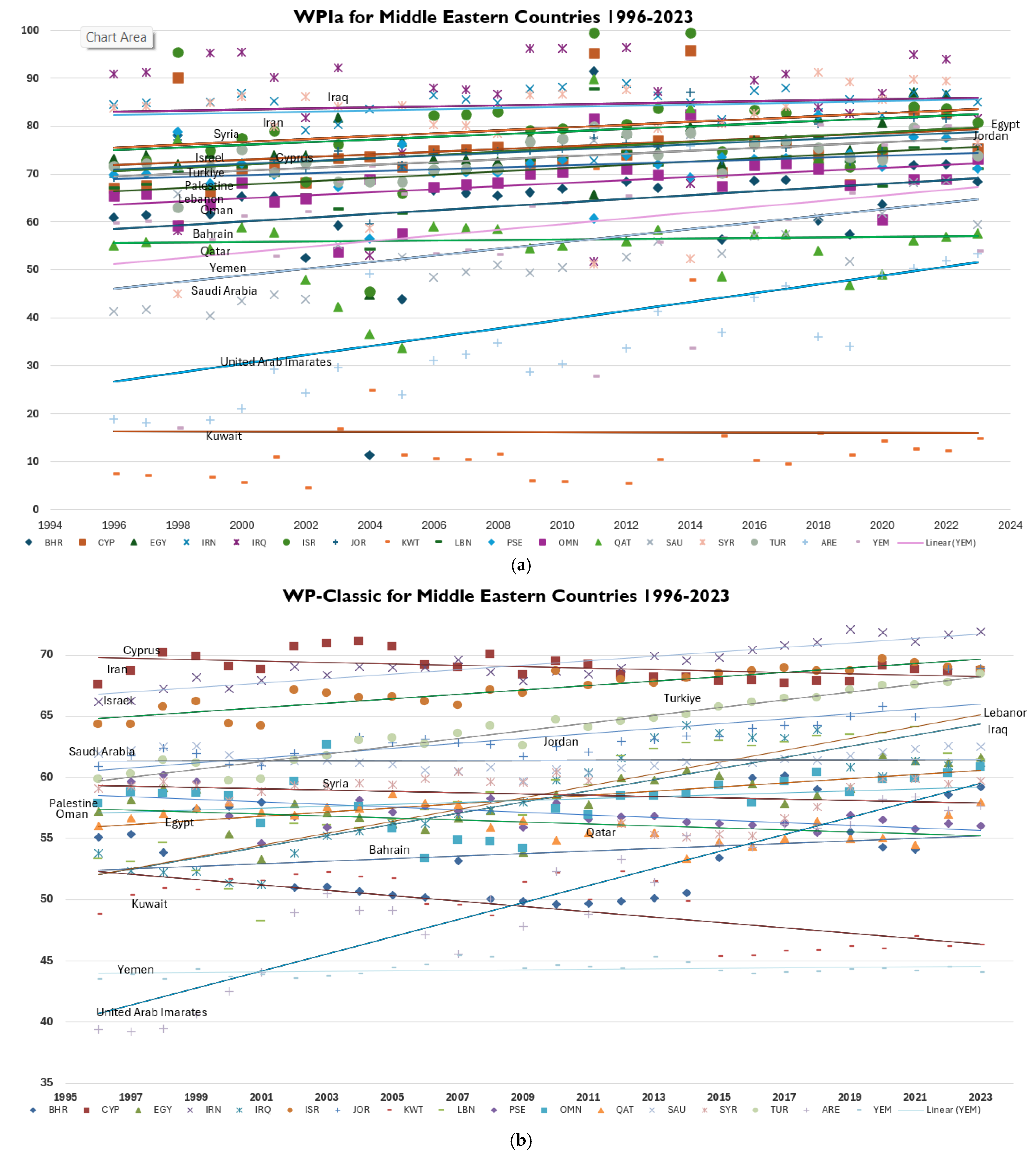 3.1. Middle Eastern Countries’ Performance in the Five WPI Components