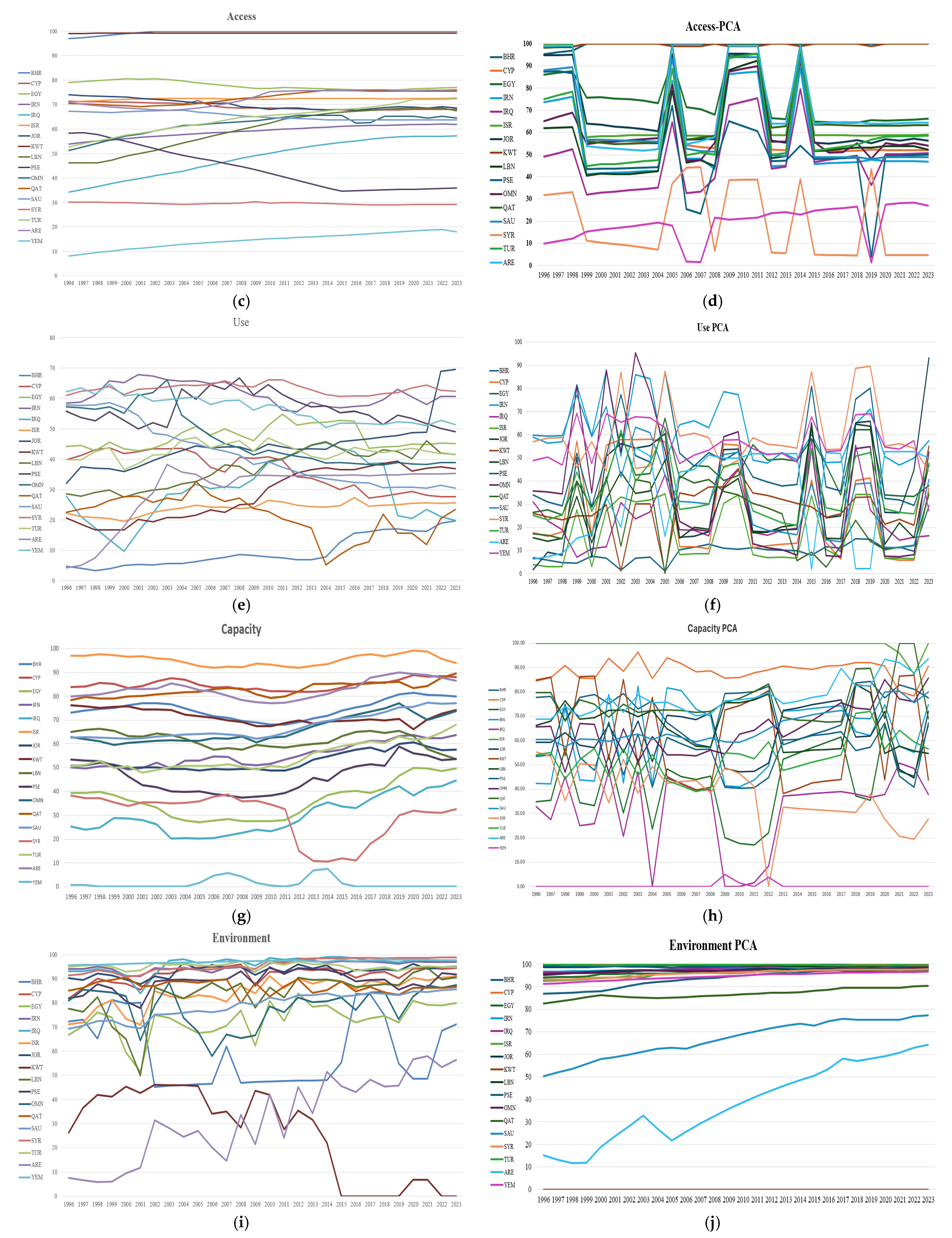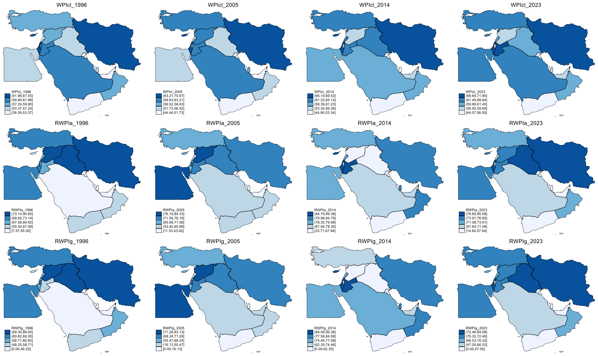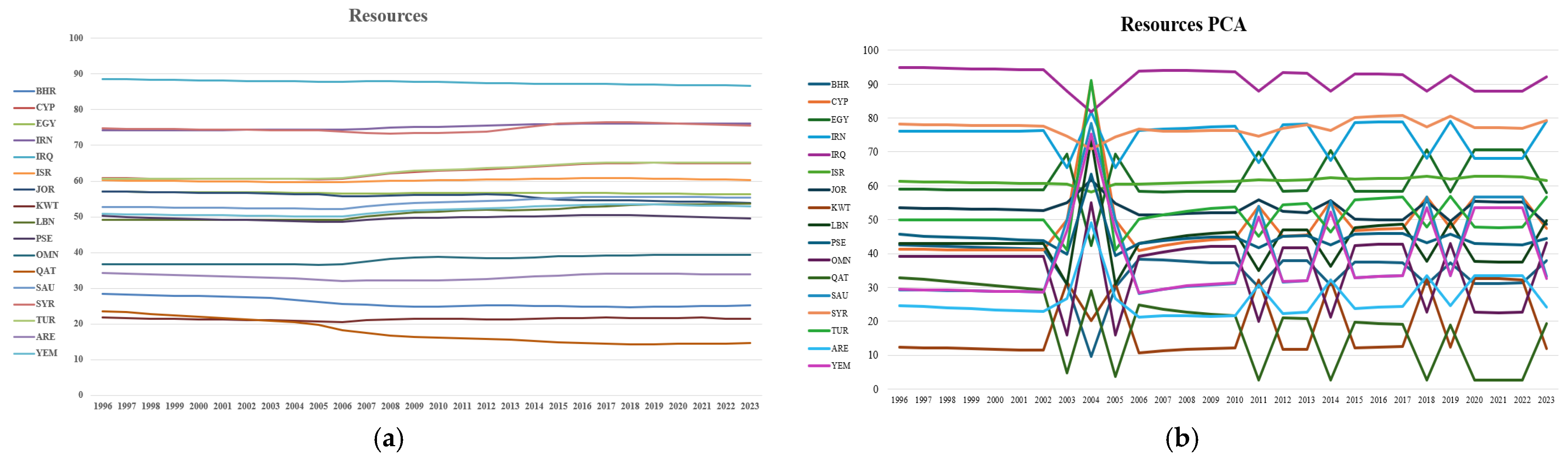 3.1. Middle Eastern Countries’ Performance in the Five WPI Components