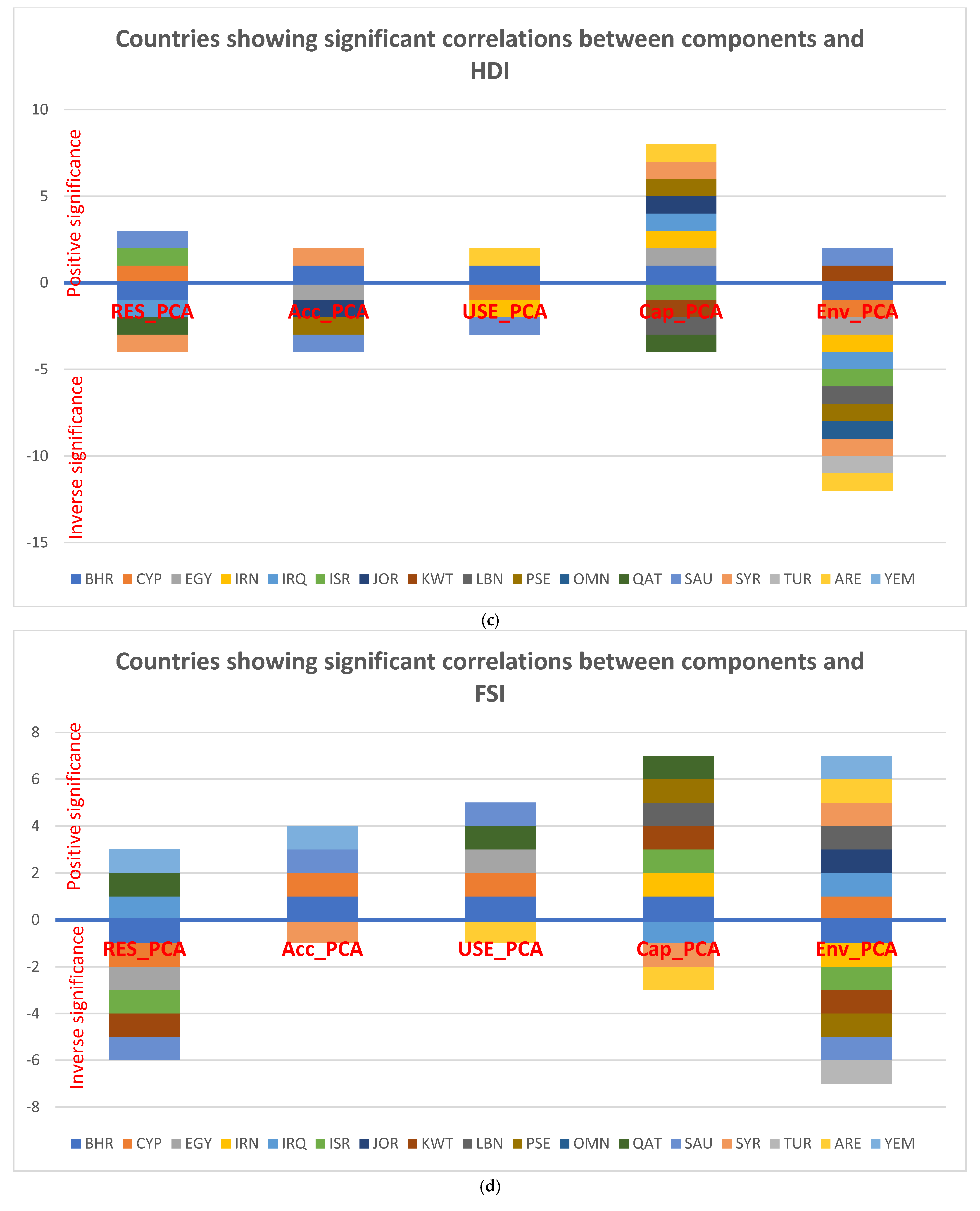 3.3.2. Correlations Among HDI, FSI, and WPI Components Calculated Using PCA