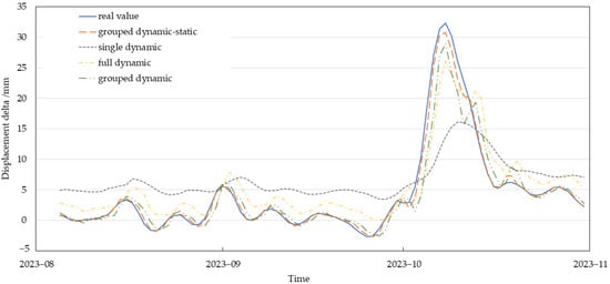 Comparative displacement forecasting for the case landslide under multiple modeling strategies.