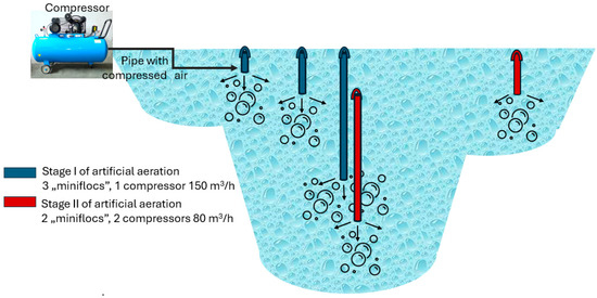 Figure 5). During artificial aeration, the oxygen content in the surface water layers was 16.5 mg O