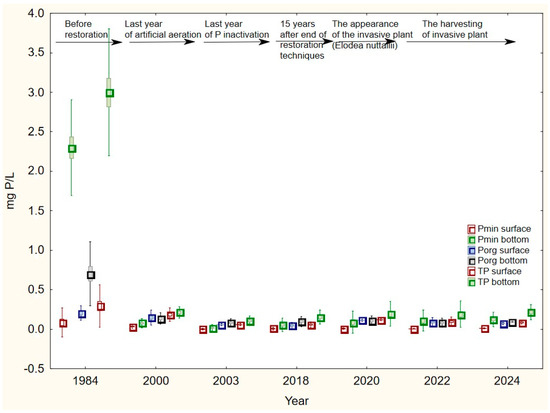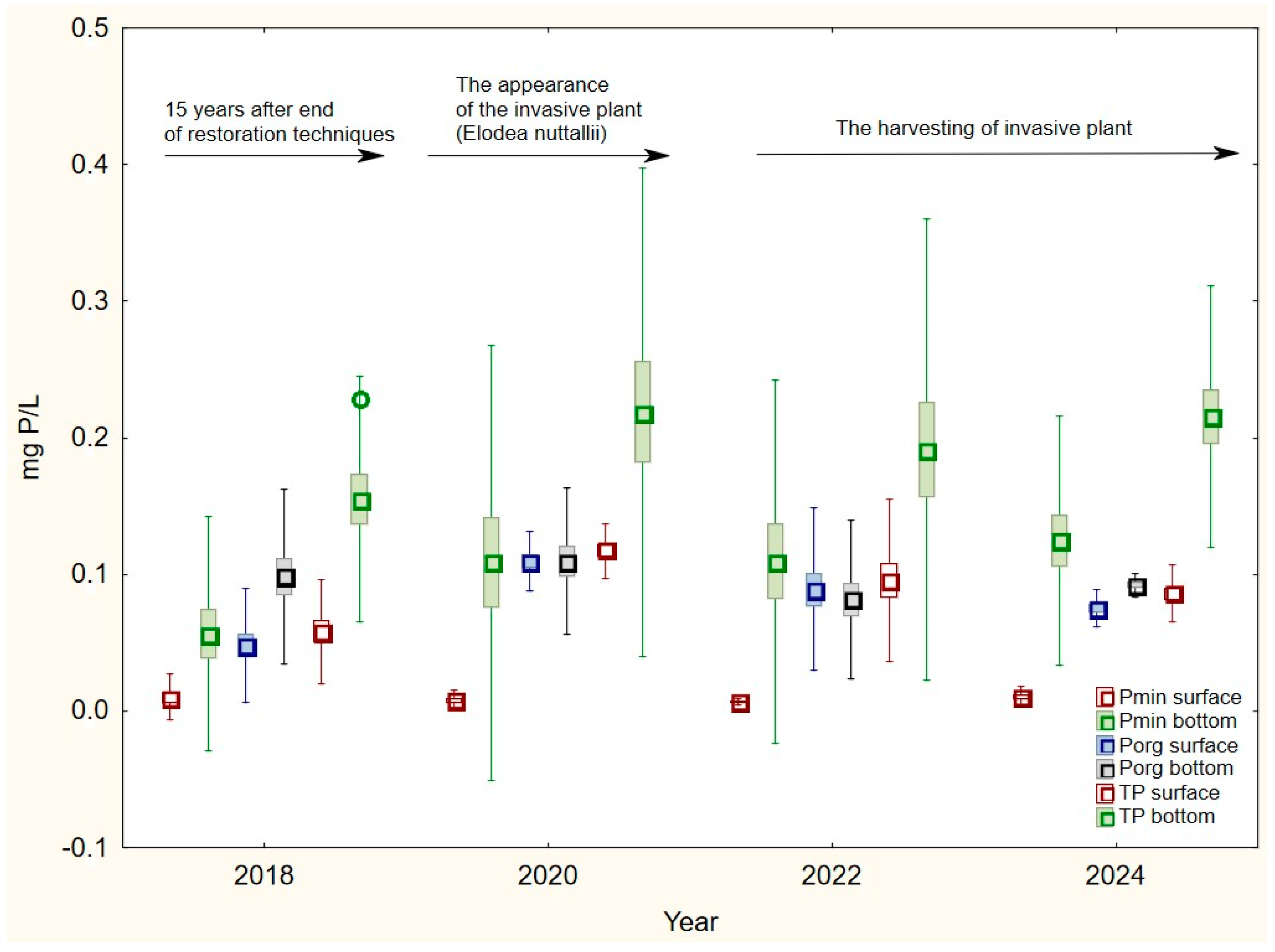Figure 7). In 2024, these values were changed to 0.075 ± 0.006 mg P/L in the surface water layer and 0.092 ± 0.004 mg P/L in the over-bottom water (