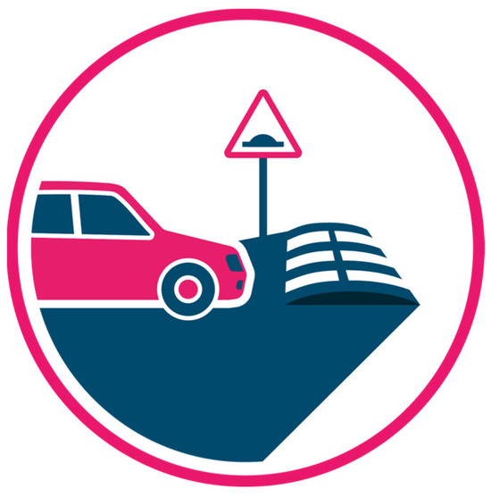 Scheme of a traffic bump (source: Alliance Accountability Toolkit; https://www.roadsafetyngos.org/toolkit/priority-interventions/traffic-calming/ (accessed on 30 September 2025)).