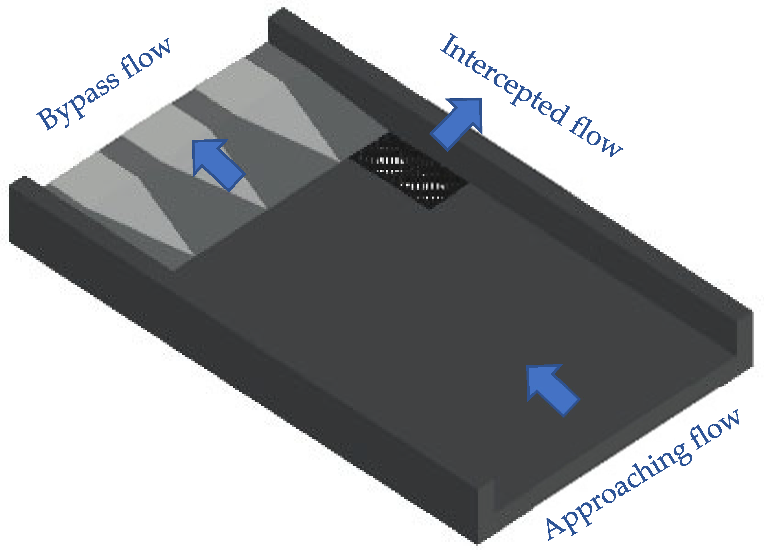 Several studies, based on both experimental and numerical approaches, have been carried out during recent decades to estimate the hydraulic efficiency of common grated inlets or non-conventional inlets (like macro-grates, circular inlets, or continuous grates) [