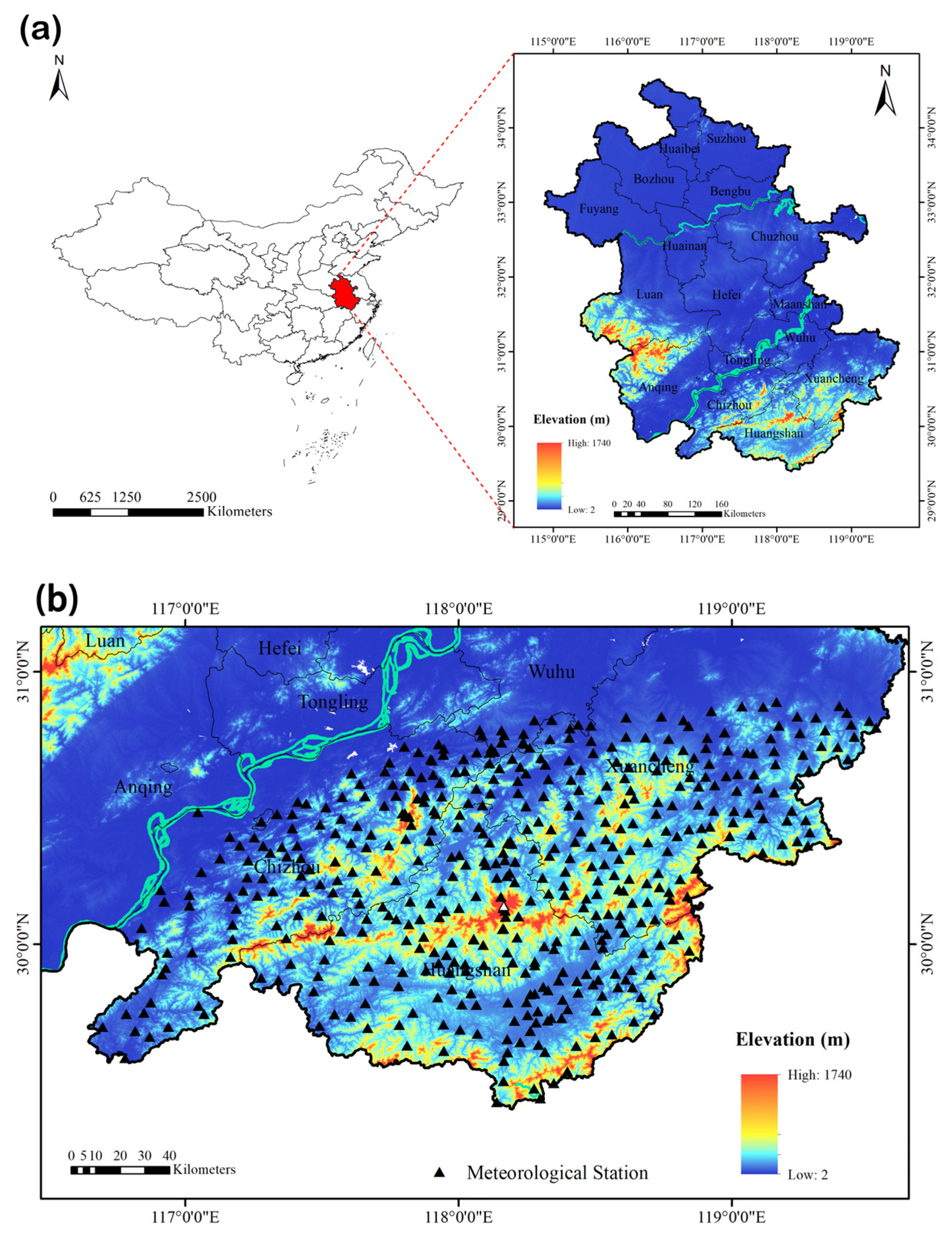 - Tong, J.; Wei, L.X.; Zhang, J.; Wang, D.Y. Statistical analysis of climatological characteristics of spring rainstorm in Anhui province. Torrential Rain Disasters 2016, 35, 504–510. [Google Scholar]