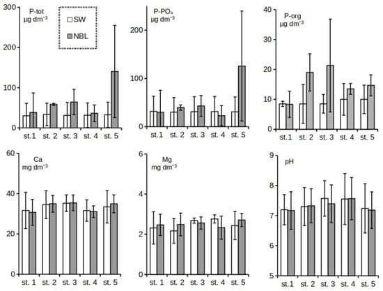 Significant differences in concentrations between both the tested water layers and sites were noted for P-org (sites 2 and 3), where the concentration in the NBL was more than twice as high as that in the SW.
