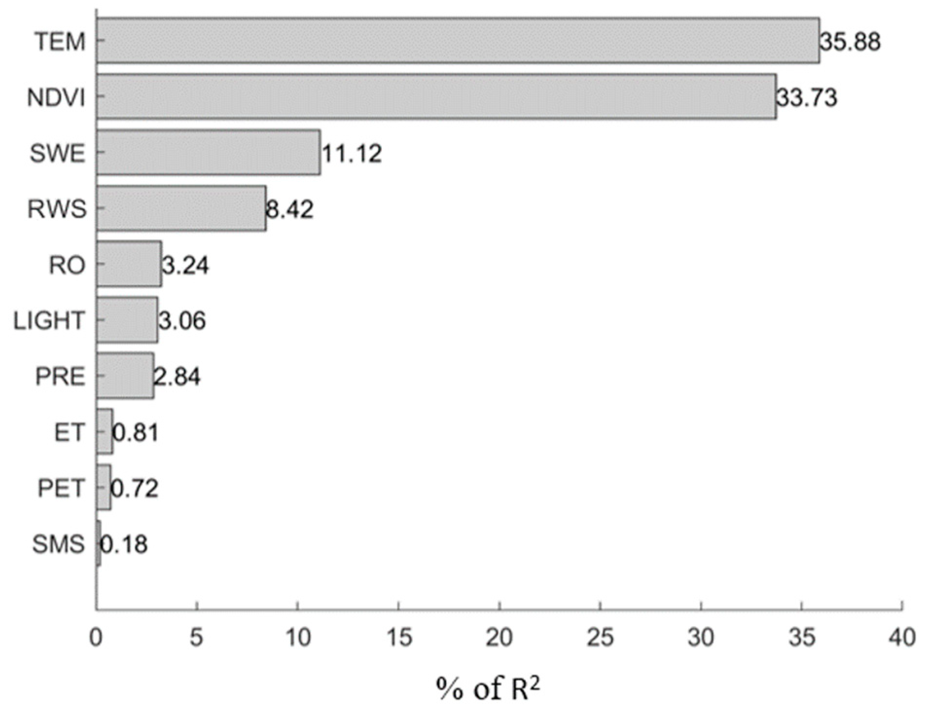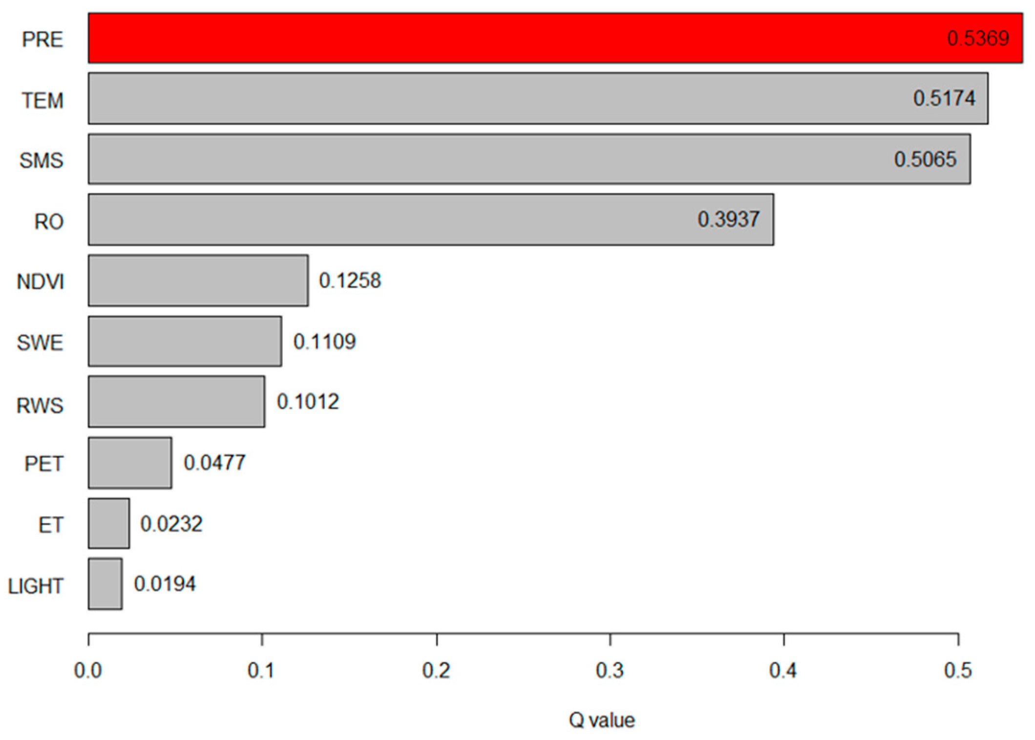 3.2. Identification of Driving Factors for the Long-Term Trend of TWSA in the Upper YRB