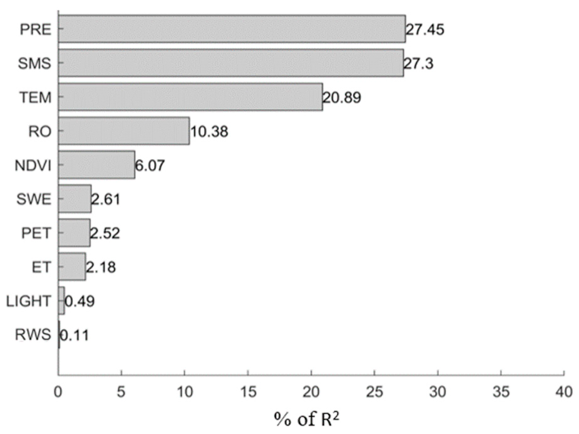 3.4. Identification of Driving Factors for the Long-Term Trend of TWSA in the Lower YRB