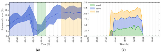(a) Long-term trend and (b) daily variation in lake ice transmittance.