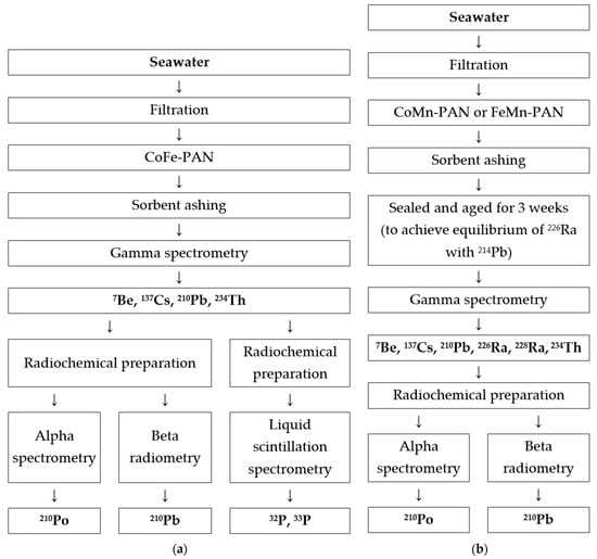 - Villa-Alfageme, M.; Mas, J.L.; Hurtado-Bermudez, S.; Masqué, P. Rapid determination of 210Pb and 210Po in water and application to marine samples. Talanta 2016, 160, 28–35. [Google Scholar] [CrossRef] [PubMed]