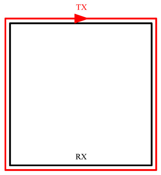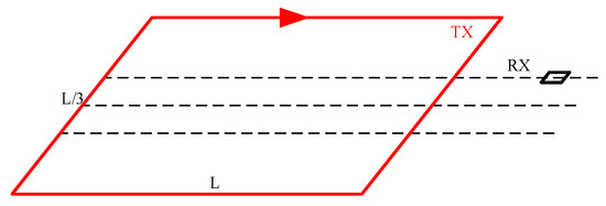 The large fixed-source loop, also known as the large, fixed emission-movable reception combination, typically utilizes a large emission and small reception setup. This configuration facilitates the measurement of induced signals generated by the magnetic field both within and outside the loop, thereby acquiring geological information of the target area [11]. The advantages of this device include larger emission coils capable of generating stronger electromagnetic fields, inducing stronger currents deep underground, and typically achieving greater detection depths [12]. Additionally, since the emission coils are positioned above ground, they are less susceptible to terrain influences, reducing construction difficulty and making them suitable for deployment in complex terrains. However, the construction of this device involves a substantial workload and is highly inconvenient. Moreover, it usually requires the use of high-power emitters, and the material requirements for the coils are typically higher than those of other devices, resulting in increased installation costs [13]. Furthermore, this device generally necessitates a large working area, which may be limited by site conditions. Large fixed-source loop devices are depicted in Figure 1 and Figure 2.