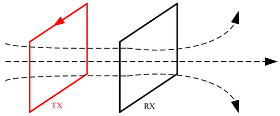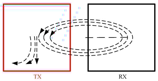 The transient electromagnetic dipole device first appeared in 1933, when it was proposed by the American scientist L.W. Blau [46]. Its basic principle is to equivalently represent the radiating probe as a magnetic dipole, utilizing the radiation effect of magnetic dipoles on electromagnetic waves in the air to achieve the detection and analysis of targets. Dipole devices can be specifically categorized into vertical magnetic dipole devices, coaxial horizontal magnetic dipole–dipole devices, and quasi-dipole devices. The advantages of dipole devices are primarily reflected in the following aspects [47,48,49]: their low sensitivity to primary fields significantly enhances detection accuracy; they exhibit strong resolution capabilities in shallow detection, particularly suitable for complex environments such as the seabed; their operational flexibility and convenience make them ideal for fieldwork; compared to overlapping loop devices, dipole devices have obvious advantages in resolution and the accuracy of determining the position of anomalous bodies. Their limitations are manifested as follows [50]: when the dipole spacing is large, the induced signals are relatively weak, making the precise localization of anomalous bodies difficult; their detection depth and signal strength are generally inferior to those of overlapping loop devices; dipole devices exhibit non-negligible errors between the approximate and exact solutions of field points within the emitting loop area, which is particularly critical for high-precision detection. Dipole devices are illustrated in Figure 6 and Figure 7.