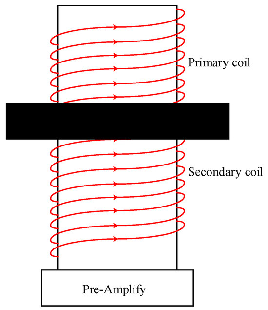 Magnetic induction probes are small coils wound with coaxial induction coils on a magnetic core, utilizing multiple turns of copper wire to enhance magnetic flux detection capability, thereby enabling the sensing of weaker magnetic field signals [63]. The magnetic induction probe device is illustrated in Figure 9.