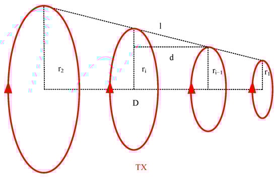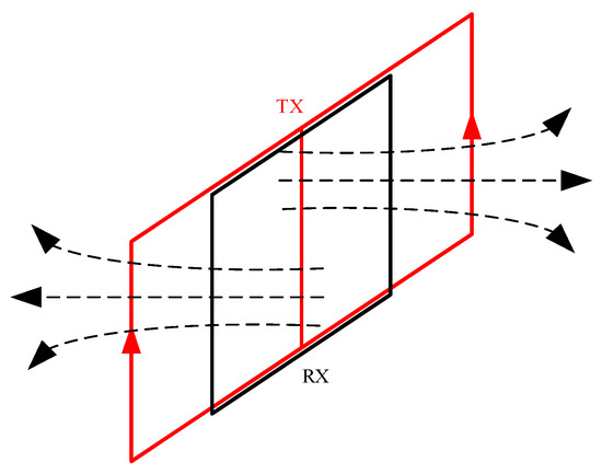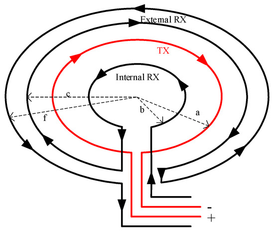 The overlapping loop (also known as the co-loop) is essentially a special type of central loop achieved by overlapping the transmitting and receiving coils. This device typically consists of two or more overlapping loops, and during operation, the transmitting and receiving coils move simultaneously [36,37,38,39]. Additionally, overlapping loops exhibit stronger adaptability to different geological conditions [40], and the accuracy of data interpretation is further enhanced [41]. However, early overlapping loops suffer from mutual inductance between the transmitting and receiving coils, resulting in blind zones in shallow exploration. Overlapping loop devices are not suitable for frequency-domain electromagnetic methods [42], and this specificity requires that, when designing and applying overlapping loop devices, their specific requirements and limitations in TEM must be considered. Overlapping loop devices are shown in Figure 5.