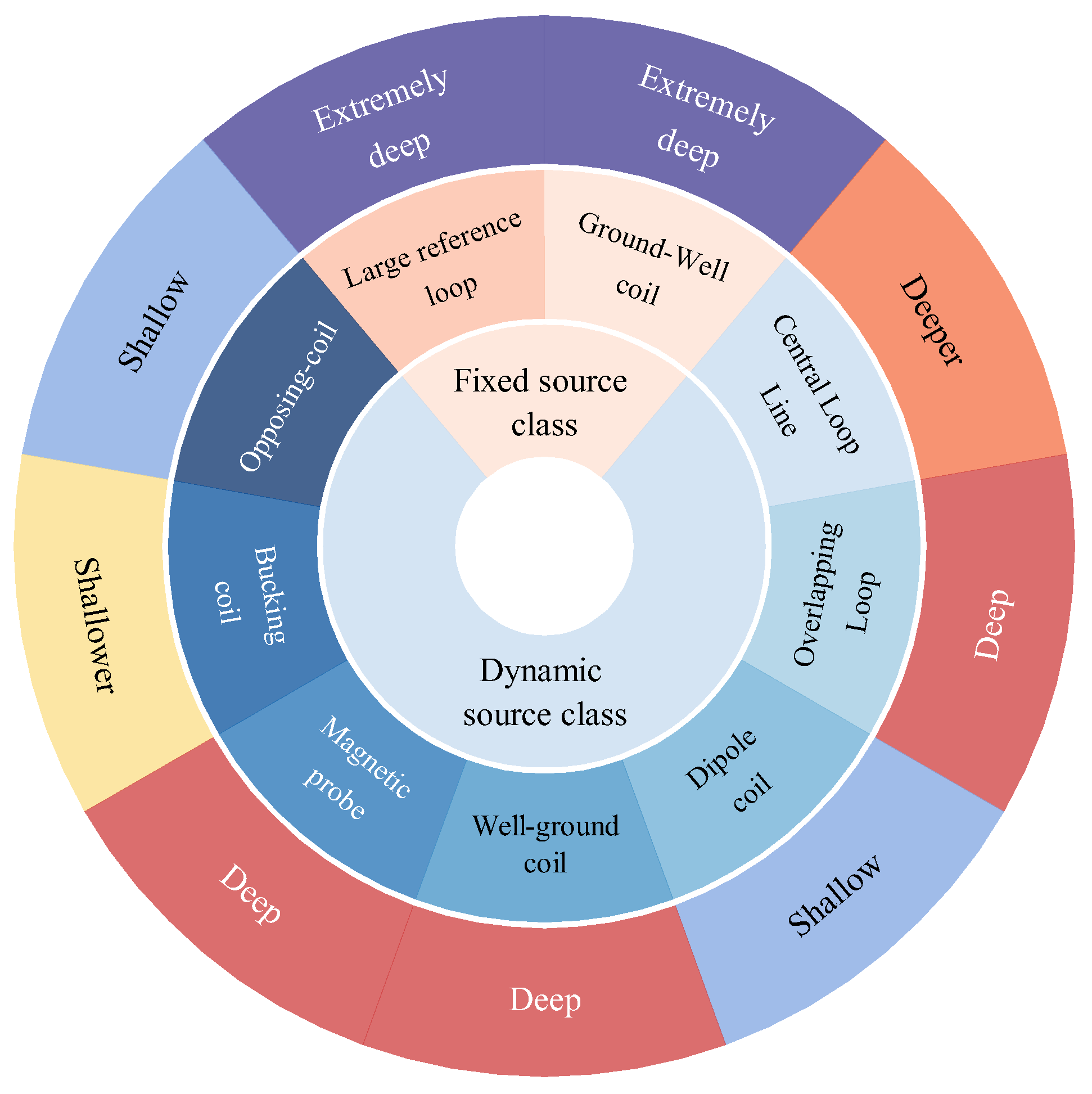 In light of this, this study proposes a classification method based on whether the field source (emission source) of the TEM coil device is fixed. Magnetic source transient electromagnetic coil devices are categorized into fixed-source devices and moving-source devices, as shown in Table 1 below. This classification strategy effectively avoids the aforementioned two types of problems, providing a new perspective for the study of transient electromagnetic coil devices.