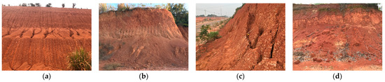 The soil used in the experiment was sourced from the Paleo-clay layer of the unstable slope in Shiguling Village, Jiayu County, Xianning City, China. Based on the mineral composition, mineral content, soil structure, texture, and color of the study area’s Paleo-clay, it was classified into three categories: iron-bearing clay, reticular clay, and kaolinite clay. This study primarily focused on the former two categories. Physical tests determined the basic physicomechanical parameters, as shown in Table 1.