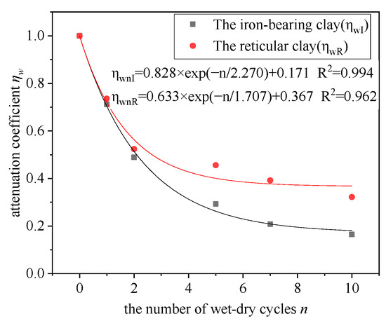 Relation between the decay coefficient [ηw] and number of wet–dry cycles [n].