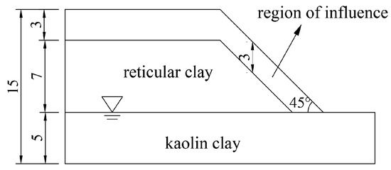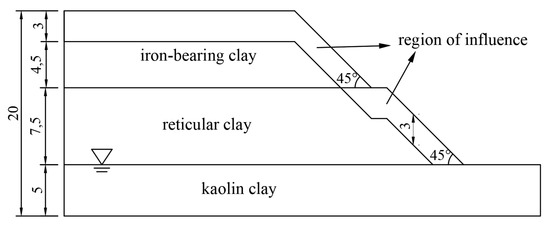For Type III ferromanganese-containing clay slopes, typical profiles were also selected to construct a numerical model, as shown in Figure 12.