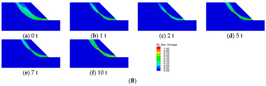 Plastic zone of Type II Paleo-clay slope: (A) soaking conditions; (B) wet–dry cycling conditions.