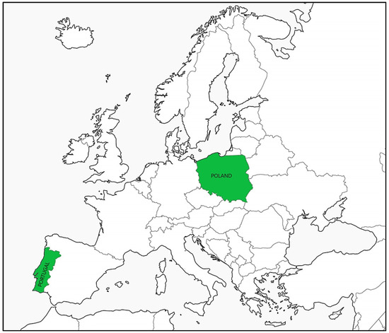 The studies were conducted in Portugal and Poland (Figure 1), with the research consisting of two parts.