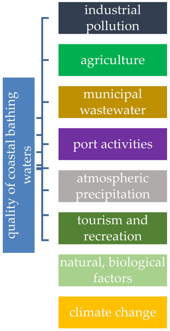 Below, based on our analysis, we include an overview of various factors affecting the quality of coastal bathing waters (Figure 4).