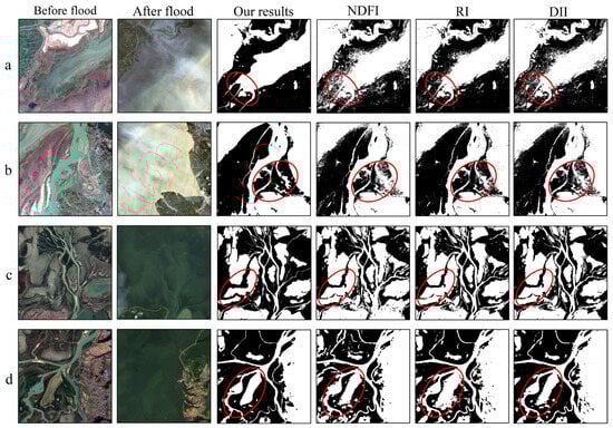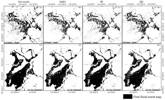 - Xue, F.; Gao, W.; Yin, C.; Chen, X.; Xia, Z.; Lv, Y.; Zhou, Y.; Wang, M. Flood monitoring by integrating normalized difference flood index and probability distribution of water bodies. IEEE J. Sel. Top. Appl. Earth Obs. Remote Sens. 2022, 15, 4170–4179. [Google Scholar] [CrossRef]