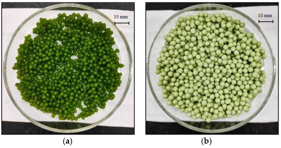 The two kinds of immobilized microalgal spheres are shown in Figure 2.