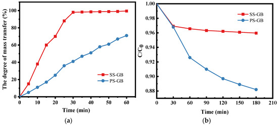 The mass transfer and adsorption property of PS-GB and SS-GB are shown in Figure 6.