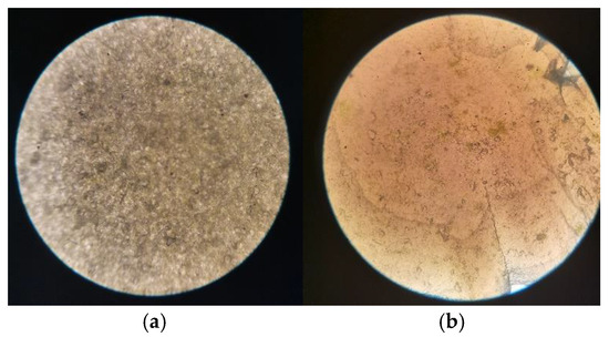 Microscopic observations of two kinds of gel balls at 10× magnification. (a) SS-GB and (b) PS-GB.