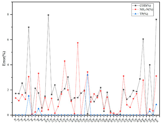 Average relative error of river network water quality in the study area.
