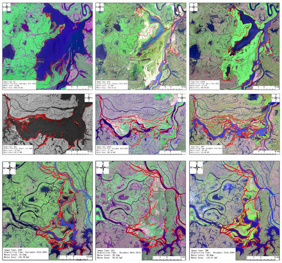 Partial results on water bodies delimitated annually by different types and different period images of Dongting Lake.