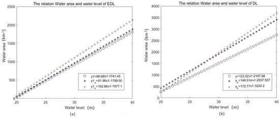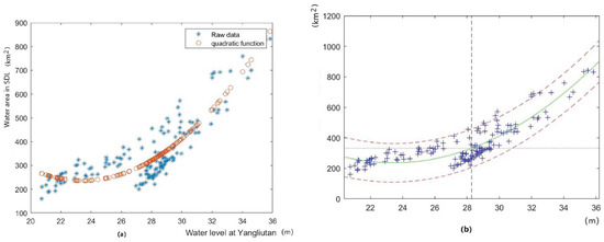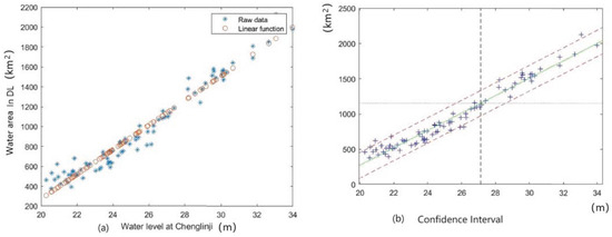 (a) The relationship between water area and water level in SDL. (b) The confidence intervals.